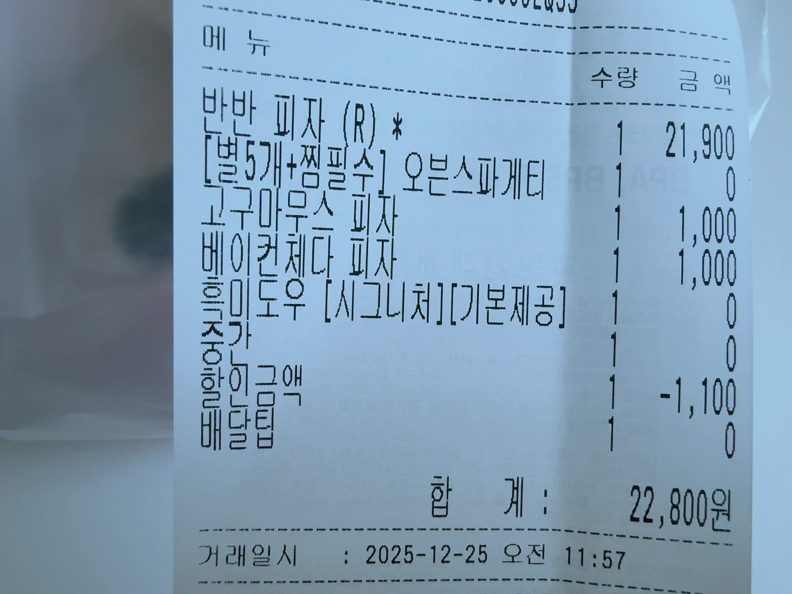 리뷰이벤트 참여해서 오븐스파게티 선택했다 (피자집의 특유의 오븐스파게티가 땡길때가 있음)