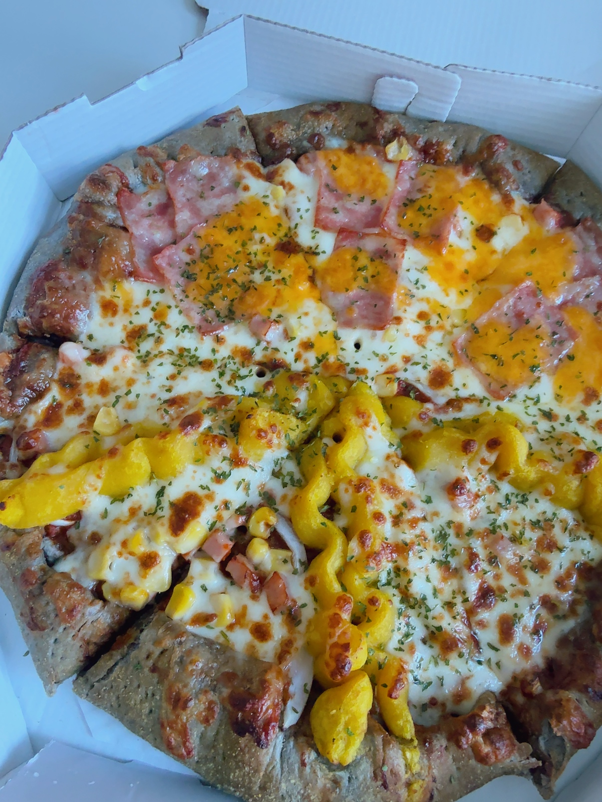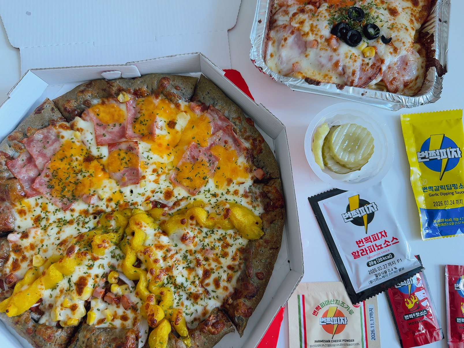 번쩍피자 메뉴는 반반피자에서 고구마무스피자 베이컨체다피자