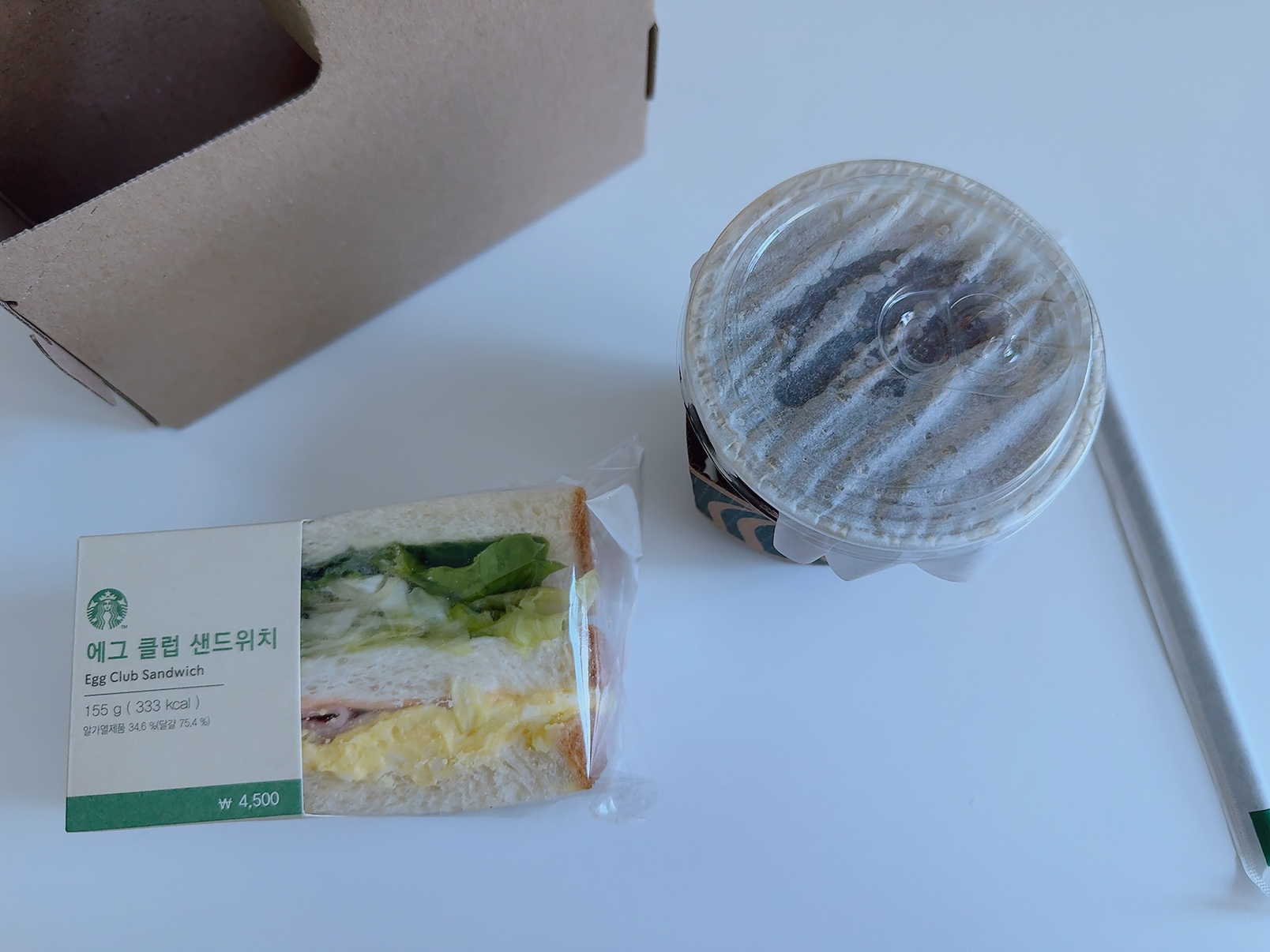 깔끔하게 문앞으로 배달된 샌드위치와 커피