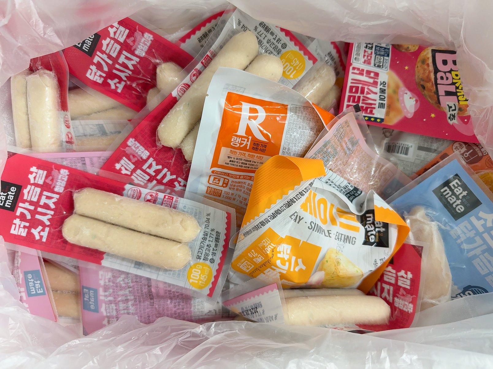 자취 시작하자마자 산거 잇메이트 닭가슴살 소시지랑 냉동 닭가슴살 들들
