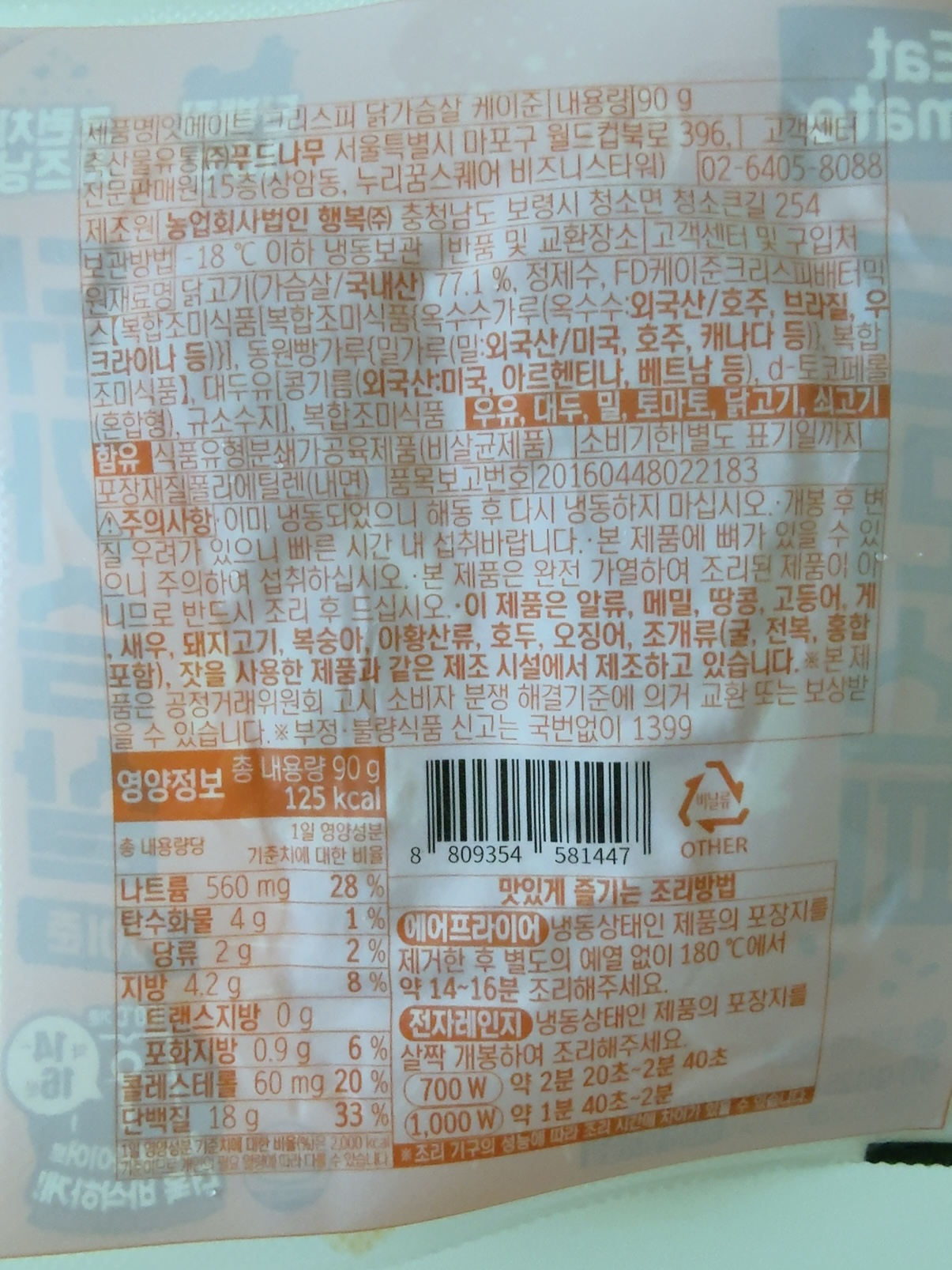 에어프라이기에 돌렸는데 바삭한 느낌은 아니지만 고기가 닭가슴살인데 부드러운 편이었다