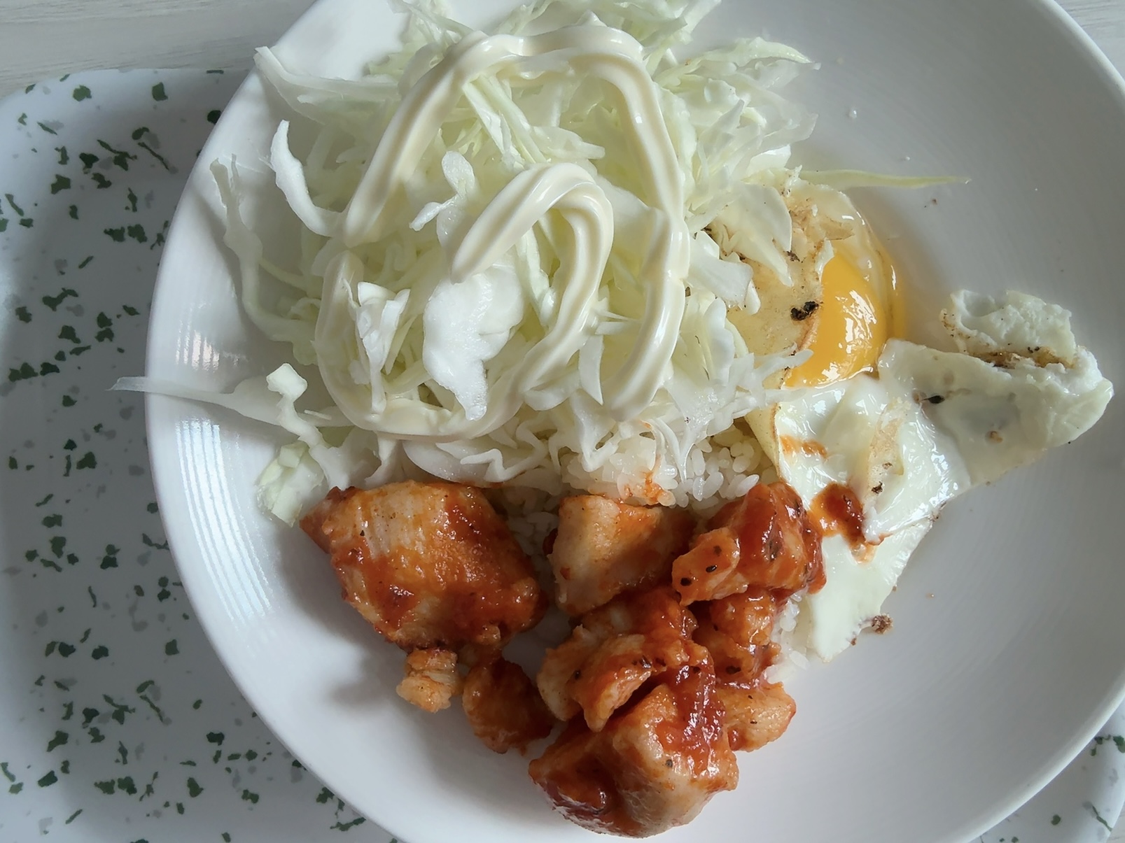 양배추 사둔거 있어서 양배추 샐러드랑 계란후라이랑 밥이랑 한끼 뚝딱